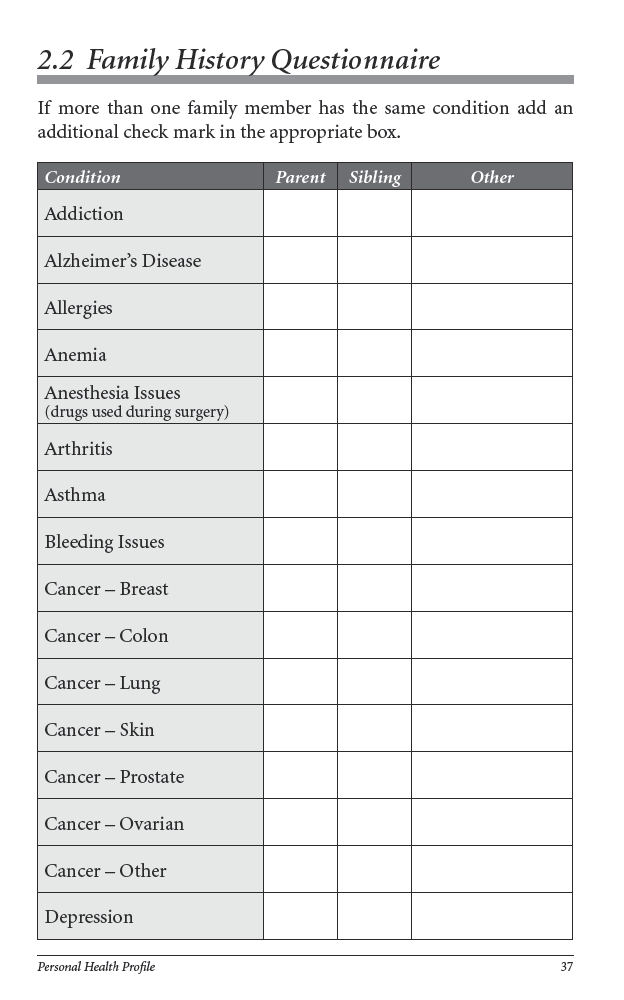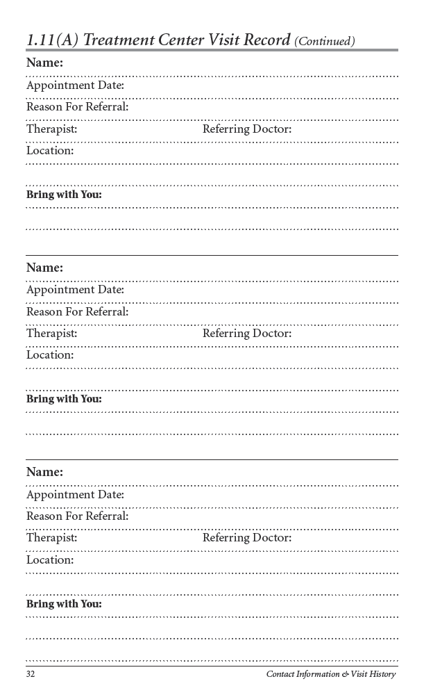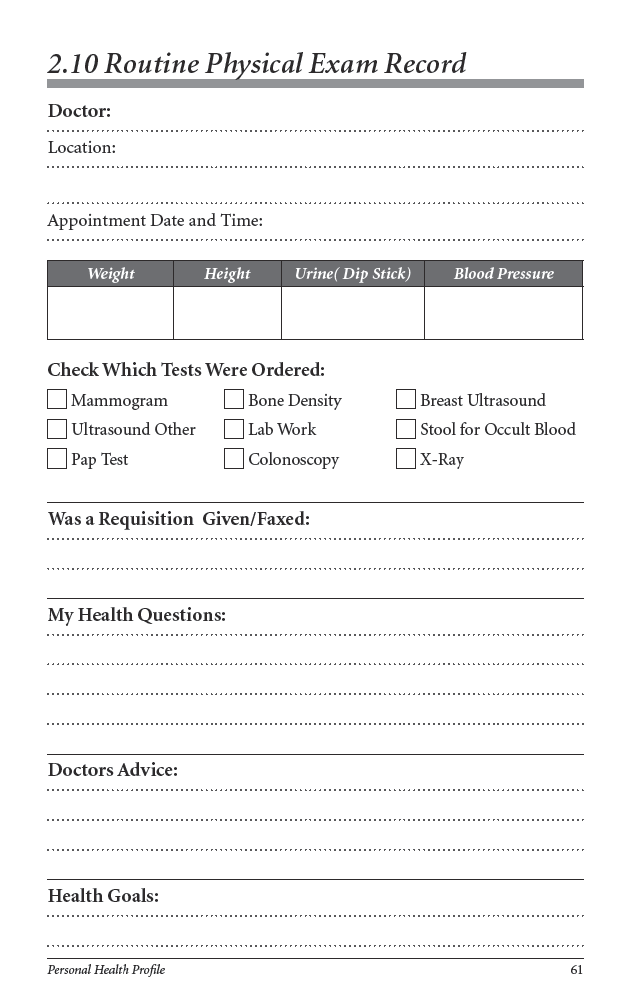 Contact Information • Visit History • Personal Health Profile Future Health Planning • Maintaining Your Health